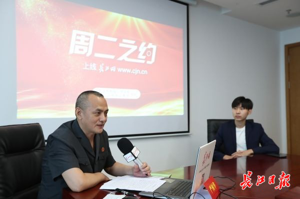 江汉区法院党组书记、院长严树华在直播间。