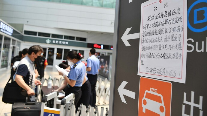 因6月11日北京突然暴发的聚集性新冠肺炎疫情,北京市政府提倡“非必要不出京”,中高风险的街道乡镇、新发地市场相关人员禁止出京。6月19日起,北京市所有省际客运班线全部停运。6月22日中午起,北京全市50余个检查站陆续开始检查出京人员的核酸检测阴性报告。6月23日零时起,北京铁路部门已在全市各站点严格查验出京旅客核酸检测证明,对于无法提供7日内核酸检测阴性证明的旅客劝阻登车。