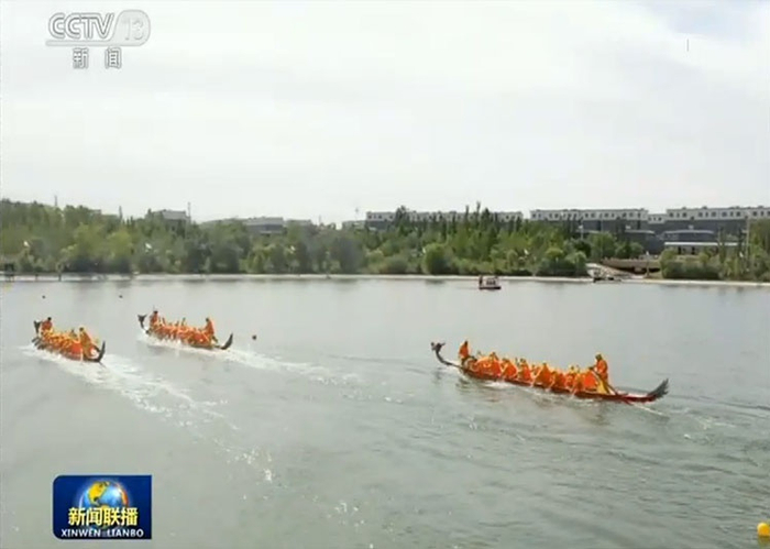 在陕西安康,一年一度的端午龙舟赛激情上演,18支龙舟队在汉江之上一决高下。今年这里还把龙舟赛搬到了“云端”,让大家得以在网上实时观看,有效减少了现场观众的人数;新疆喀什英吉沙县的龙舟赛,今年已经举办了第二届,不少参赛队是各个民族齐上阵,合力拼搏力争上游;在安徽泗县,十里八乡的农民组成了19支龙舟队,在大运河上展开角逐。