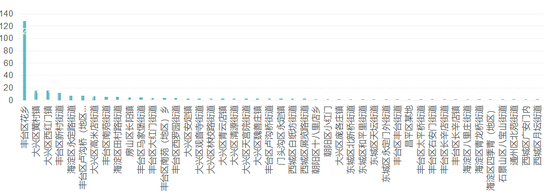 知道君统计发现,确诊病例超过10人的街道(乡镇)至少有4个,分别是丰台区花乡(地区)、大兴区黄村镇、大兴区西红门镇、丰台区新村街道。第五是海淀区永定路街道。