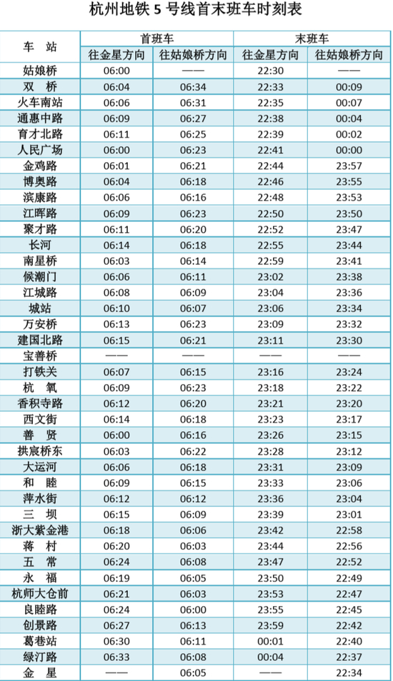 火车南站站开通后,5号线的首末班时刻表,请大家注意查收。