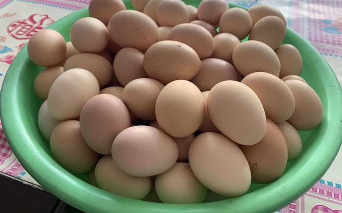 同村的田巨海是和李桂英同一批收到的青年鸡,家里也建了鸡舍,20多只鸡在田巨海的照料下,每天都能下蛋,最近,田巨海又攒了满满一盆的鸡蛋,准备送到站点上卖了换钱。