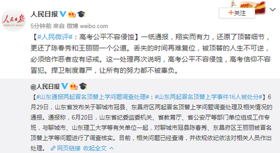 山东通报顶替上学事件 人民日报:高考公平不容侵蚀