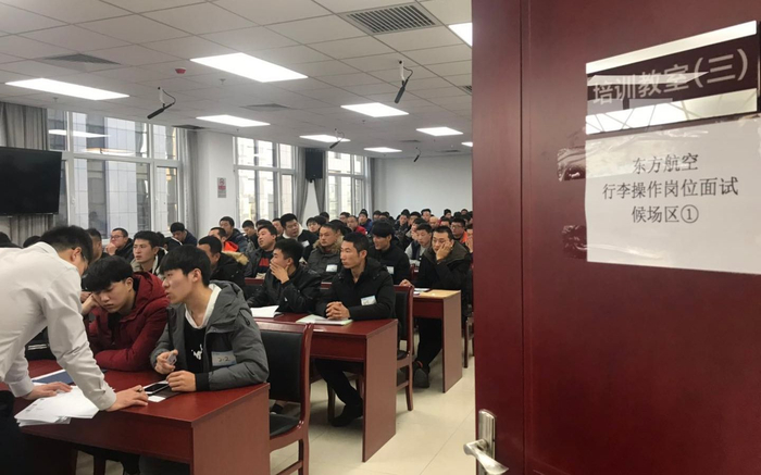 航空公司招聘考试吸引了不少应聘者。