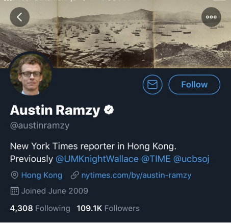 [环球网报道]《纽约时报》又摊上事儿了。近日,《纽约时报》驻港记者奥斯汀·拉姆齐(Austin Ramzy)因使用第二次鸦片战争期间英法舰队集结香港的照片作为推特封面照片,引发网友愤怒。随后,这名记者赶紧换掉了这张图。。。。。。