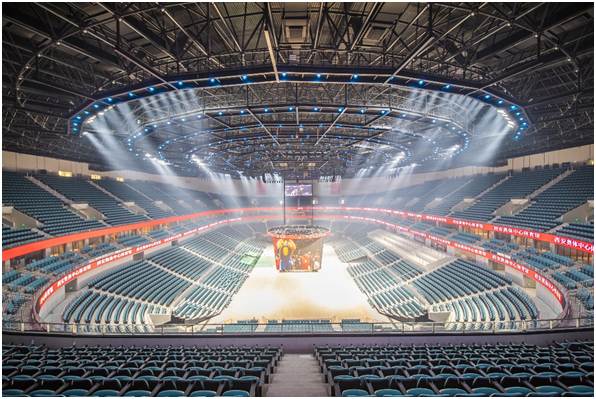 西安奥体中心体育馆地面可实现快速冰篮转换,场地中央设有全国最大最先进的斗屏系统,可为观众带来绝佳观看体验