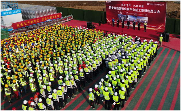 2019年1月,西安三中心项目举行万人誓师大会,迎接全面攻坚建设高峰