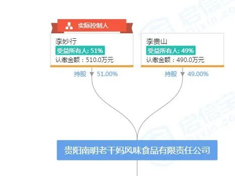2014年6月,陶华碧将自己手中仅有的1%的股权转让给了次子李妙行,淡出管理层,老干妈的股权结构为次子李妙行持股51%,长子李贵山持股49%。