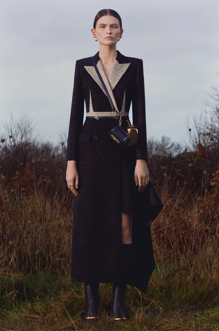 又美又飒的黑灰色外套、精致剪裁的西服套装、不对称垂坠连衣裙以及廓形针织裙,都是Alexander McQueen 2020 早秋系列的主打单品,穿在身上气场全开。设计师巧妙运用雪纺、蕾丝和皮革,营造出不同风格,其中几套尤为惊艳,令国内外明星与时尚达人爱不释手。
