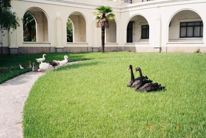 65.从湖边经过见到几只天鹅热热闹闹。有意思的是,黑天鹅和白天鹅并不在一起玩
