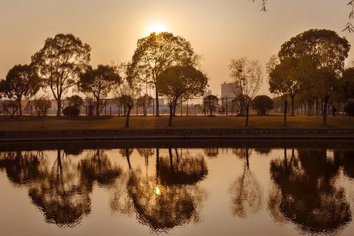 3.走出秋冬季16:15的四教,落山的太阳照得月亮湖闪闪发光。