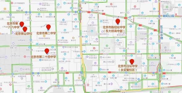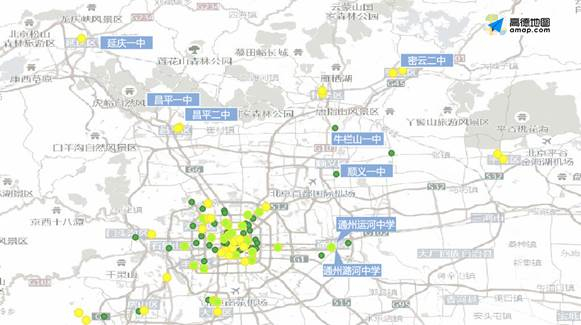 在顺义牛栏山一中、顺义一中、顺义二中、昌平一中、昌平二中、昌平先锋学校、大兴一中、师范大学大兴附属中学、八中大兴分校、延庆一中、二中通州校区、人大附中通州校区、通州运河中学西校区、平谷中学、昌平二中、密云二中等考点参加考试的考生数量多,考点周边及连接线等容易出现接送考生车流集中的情况。