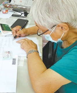图③:80多岁的邬某在家庭纠纷中被儿子砍伤,因经济困难无钱医治而申请司法救助。图为邬某在办理领取救助金手续。记者欧阳晶摄