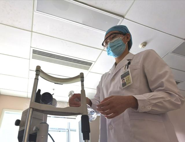 她戴着医用外科口罩和护目镜,手持喷瓶仔细地在给诊疗器械消毒,“每一位病人就诊前我都会消毒一遍,这也让病人放心。”