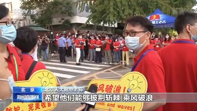 北京人大附中老师:红红火火,代表对考生的祝福。因为不能跟考生握手,所以制作了很多这种牌子,给他们一些温馨提示。