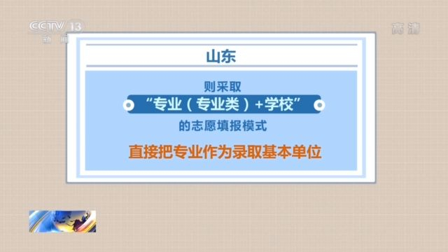 山东则采取“专业(专业类)+学校”的志愿填报模式,直接把专业作为录取基本单位。