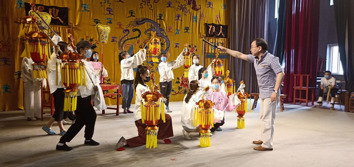 为了更好地吸引和迎合年轻观众的观剧习惯,《五丑四美图》的呈现借助了一些现代化技术手段。松天硕介绍,这一次的舞台上既引入了当下很多IP剧中比较常用的人屏互动手法,也有台前纱幕投影展示的多重空间:“保留原来传统戏曲的审美与技艺的基础上,融入当下最新的技术,展现一部符合当代观众欣赏品味的戏曲作品,慢慢让各阶层各年龄段的观众都接受这门传统艺术。”