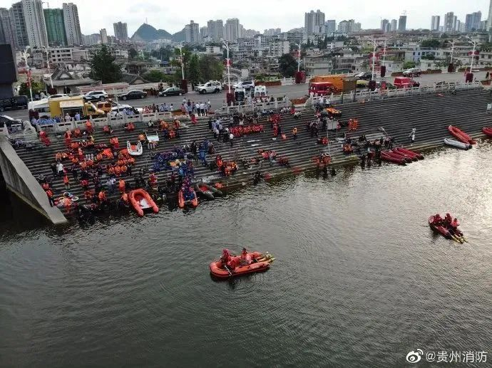 贵州省应急管理厅调度各方力量全力组织开展救援。与此同时,应急管理部派工作组赶赴现场指导救援。当地消防救援队伍第一时间调集19辆消防车、21艘橡皮艇、97人(含17名潜水员)迅速到场开展搜救。
