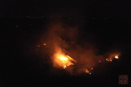 川报观察客户端7月9日消息,“蘑菇云”腾空,爆炸声震耳欲聋……7月8日夜间,广汉市金雁花炮有限责任公司(以下简称“金雁公司”)南丰生产区厂房发生燃爆事故,事故造成6人受伤,其中2人重伤、4人轻伤,同时造成周边多间民房玻璃、门窗等不同程度受损。7月9日6时,事故现场明火扑灭。