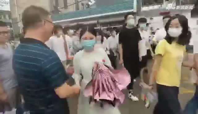 今天孩子们的高考,郑艳和几位旗袍妈妈现场助阵,喊出了“祝孩子们越挫越勇,完胜高考”的口号。