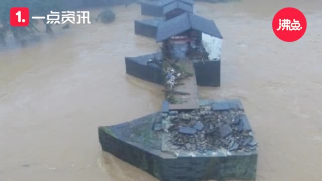 江西婺源800年彩虹桥被洪水冲断 部分桥面被冲走