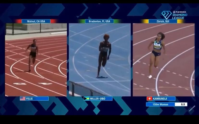 女子150米项目是全场比赛的焦点,三位名将分别在美国佛罗里达、美国加利福尼亚和瑞士3地参赛。巴哈马名将肖尼·米勒是里约奥运会女子400米冠军,也是2019年苏黎世站女子200米冠军;Mujinga Kambundi是2019年多哈世锦赛女子200米季军,此次比赛是主场作战;“女飞人”菲利克斯是当今最伟大的女子短跑运动员之一,她先后获得6枚奥运金牌、12枚世锦赛金牌。