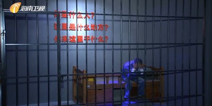 “政事儿”注意到,电视画面显示,警示教育基地除了被查官员的手写忏悔书外,还有一间监狱模型,一名服刑人员抱头忏悔,墙上写着“你是什么人?这里是什么地方?你来这里干什么?”。