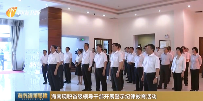 根据海南省委统一安排,7月10日下午,海南现职省级领导干部一行到海南省反腐倡廉警示教育基地,集体接受警示纪律教育。海南省政协主席毛万春、省委副书记李军参加。