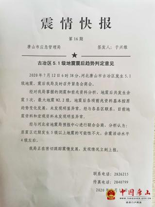 唐山发生5.1级地震 市应急管理局:1976年唐山大地震余震