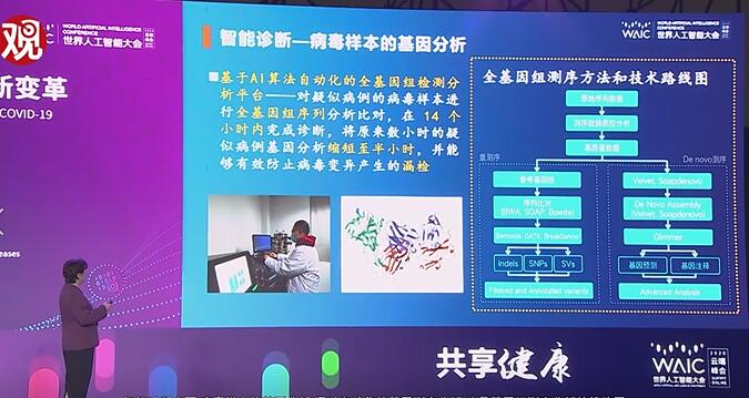 智能诊断方面,病毒样本的基因分析,通过自动化的基因组分析,能够让我们在短短的时间内把病毒的基因分析出来,以后不断的智能化、不断的发展将会提高我们的效率。