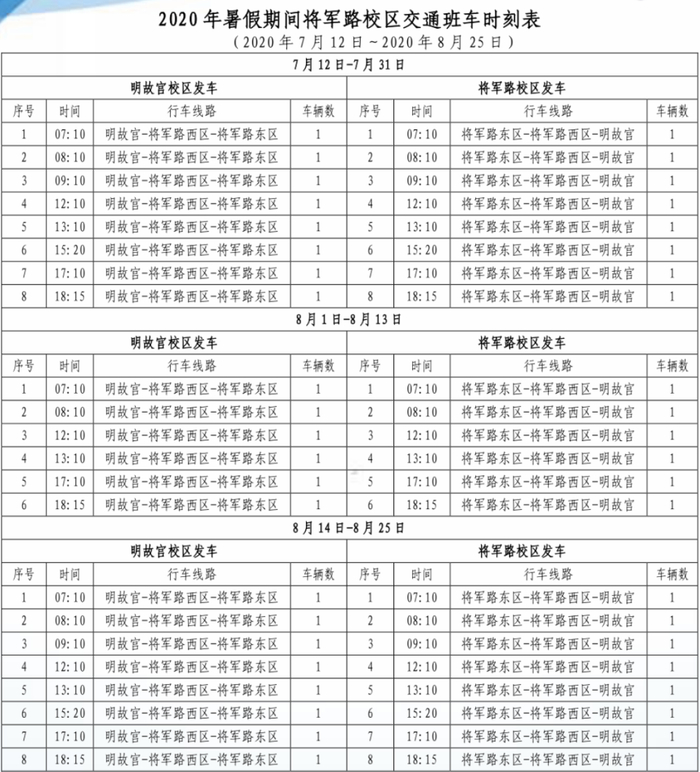 7月12日-7月26日,每周二正常上班,上午8:30-11:30,下午14:00-17:00;7月27日开始正常上班。