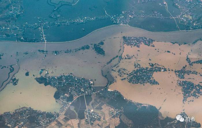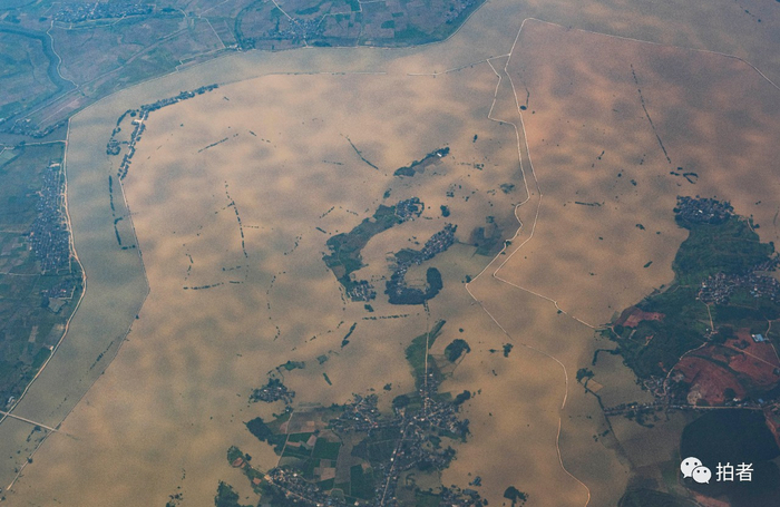 △ 7月14日上午,航拍鄱阳湖及其周围村庄受灾情况。摄影/新京报记者陶冉