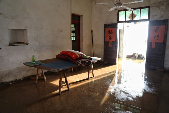 △ 7月14日,龙口村龙口小学安置点,这里安置了五户受灾村民,据介绍,村里大部分村民都投靠了亲戚。摄影/新京报记者王飞