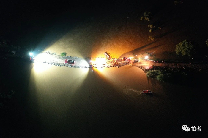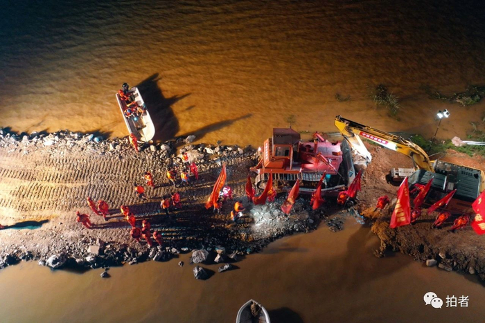 △ 7月13日23时许,江西鄱阳问桂道圩堤决口完成合龙。摄影/新京报记者逯仲胜、李阳