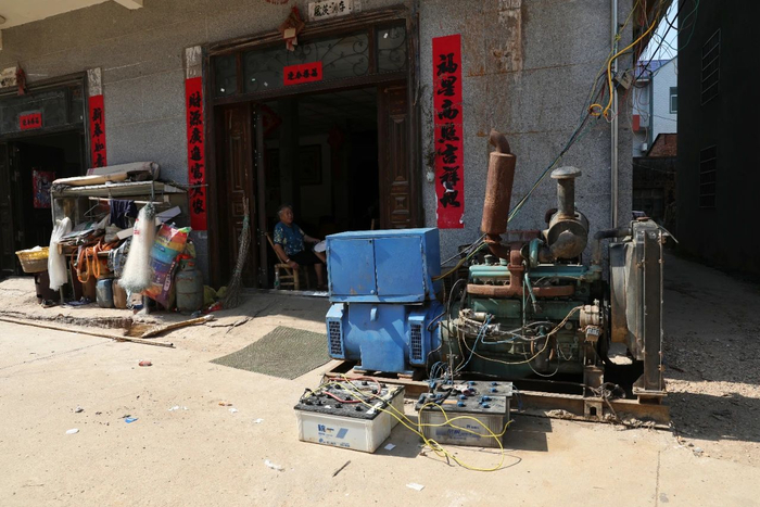 △ 7月14日,藕塘村,村民将渔船上的发电机拆下来供周边十几家村民晚上用。摄影/新京报记者王飞