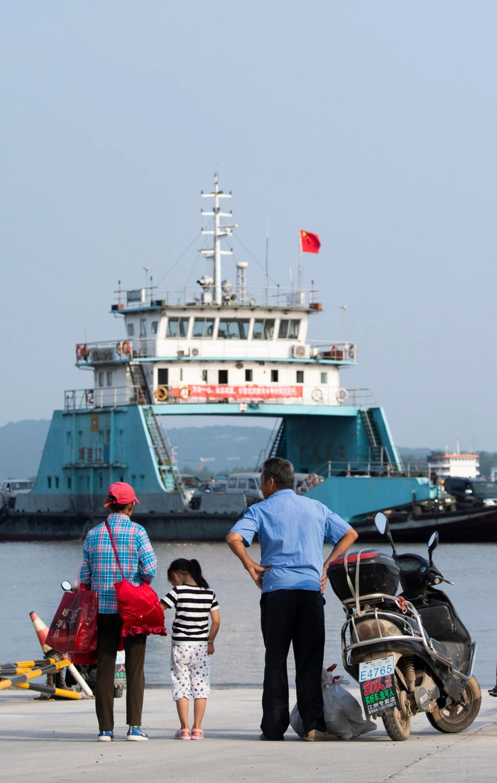 △ 7月14日,九江市江新洲渡口,由江洲镇撤离的村民乘坐轮渡抵达新港镇。摄影/新京报记者陶冉