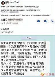 有记者日前通过手机通讯软件向前“香港众志”秘书长黄之锋查询问题,黄之锋却直接把记者名字、电话等资料上传到脸书专页公开,鼓动网民滋扰记者。