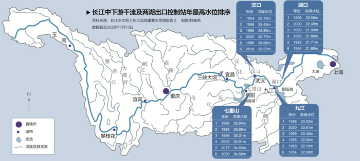 长江水利委员会曾在4月预测,2020年长江流域气象年景总体偏差,长江发生区域性大洪水的可能性较大,甚至也有可能发生流域性较大洪水。7月初,长江委表示,基于气象水文现状和补充分析,目前依然维持这种判断。