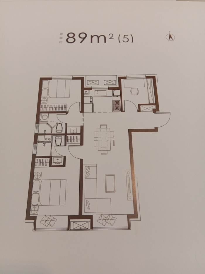 奥森ONE一款89平方米户型。目前,户型图上还未标注具体的尺寸数据。