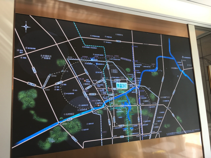 近日,新京报记者来到奥森ONE售楼处探访。虽然传说该楼盘最近热度很高,但工作日的白天,售楼处还是显得比较冷清。在区域图上,可以直观看到奥森ONE辐射了三个“圈”——上地商圈、中关村东升科技园圈、亚奥商圈。此外,如其名所示,项目南临北京奥林匹克森林公园,附近还有东小口森林公园,也因此,打出了“公园地产”的概念。