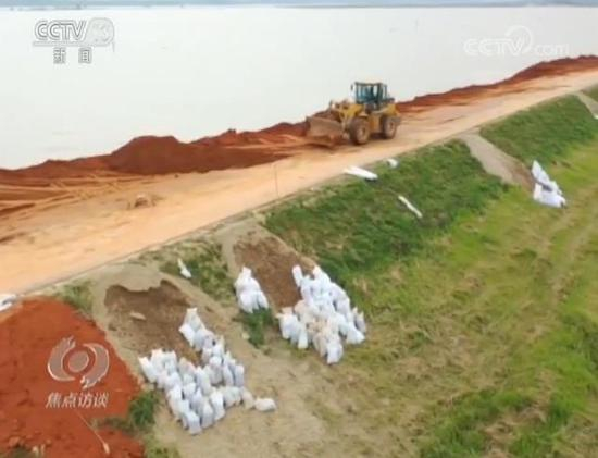 上饶市鄱阳县的鸦鹊湖河堤,由于受前期的暴雨影响,这里的堤防工程多处报警,一些堤段出现管涌险情。