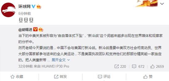 然而老胡今天要说的是,中国不会与美国打新冷战。新冷战是要中美双方社会彻底动员、世界大部分国家都参与进来的全人类运动,不是美国执政团队和支持他们的那部分精英能一家独定的。把人类重新带回到冷战中,这是历史决不会原谅的罪恶。华盛顿那样干将面临从美国国内到全世界的大量阻力。