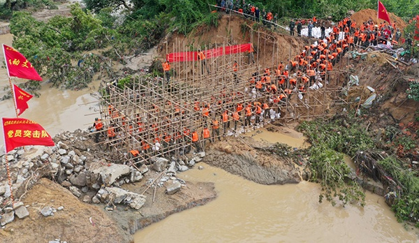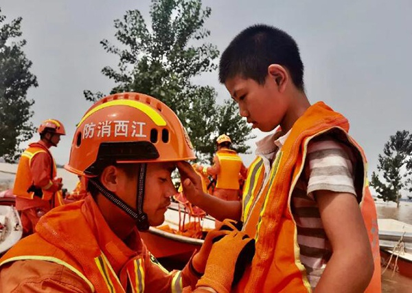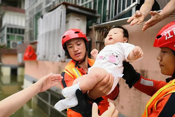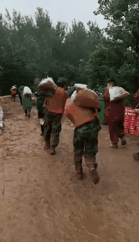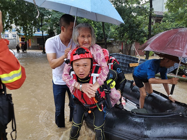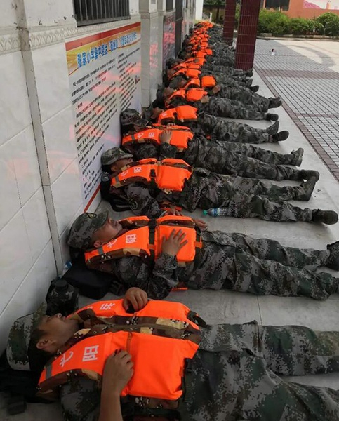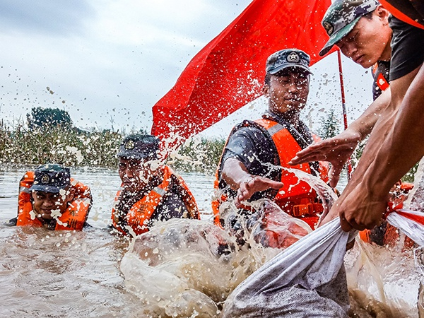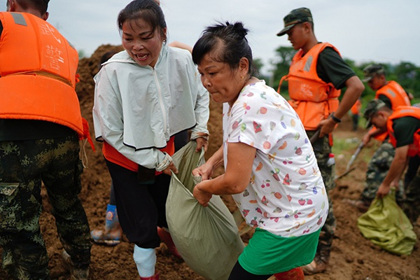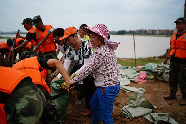 看到这么多救援人员来帮我们修圩堤抗洪,
