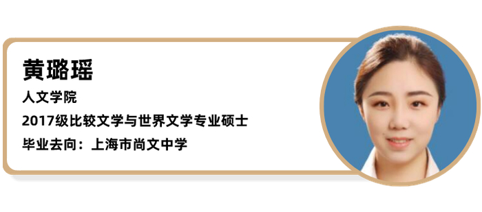 说起读研究竟给我带来了什么,我想读研带给我的不止是那一纸文凭,更是一个人生的助推剂,它让我有底气站在更广阔的平台上去实现自己的梦想。上海师大一直用浓厚的学术氛围和求真的学术态度,激励着所有师大学子以厚德博学之志,创求是笃行之风,感谢师大在三年读研时光里教会我成长。