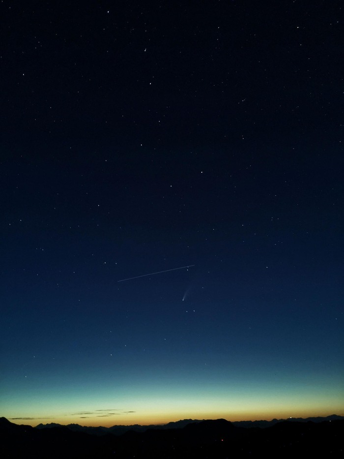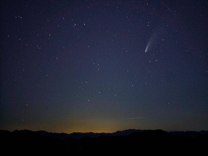 根据天文部门预测,“新智彗星”在整个7月都肉眼可见,到7月下旬,大家仍然可以在傍晚看到“新智彗星”的身影。