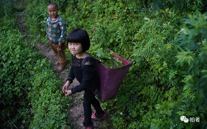 2018年6月24日,毕节市七星关区海子街镇五十亩村,李佳雪和弟弟从地里挖完菜回家。李佳雪的母亲5年前离家不知去向,父亲在浙江打工,姐弟三人平时和奶奶一起生活,睡在一间建于上世纪90年代的土木结构危房里,每天往返学校要走3个小时。2017年,他们家被纳入精准扶贫户。