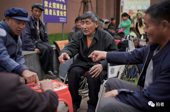 2020年6月8日,毕节市威宁县五里岗街道,伍正明自己摇着轮椅到小区老人们聚集的地方打牌。迁入新居后,伍正明和妻子都被纳入了城市低保,在云南打工的儿子也返乡就业,在当地的江南公司上班,月薪3000多元。现在一家人团聚在一起,伍正明说,过去不想搬,现在搬过来了,日子也好过多了。