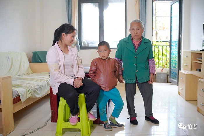 2020年6月6日,毕节市七星关区柏杨林街道阳光社区,曾德英和孙子、女儿在100平方米的新家里。三人均被纳入城市低保,龙星的父亲此前在浙江宁波打工,因为疫情返乡,在社区就业中心的推荐下进入附近企业工作。