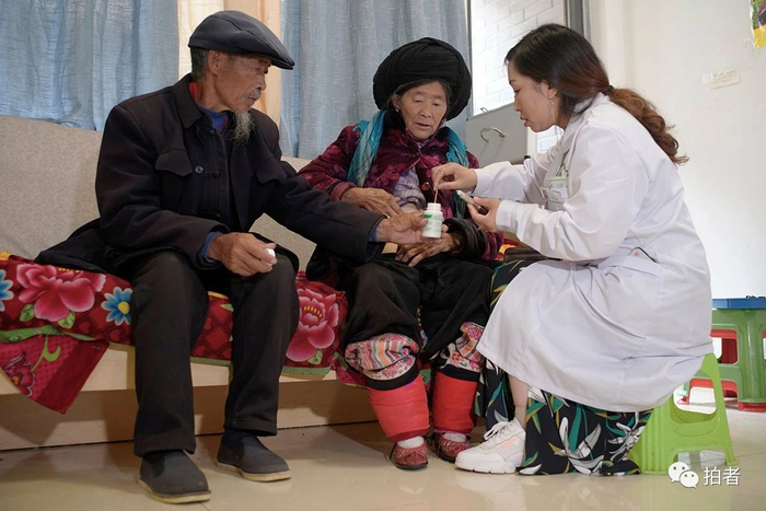 2020年6月8日,毕节市威宁县五里岗街道朝阳社区,社区医生定期到卯留玉夫妇新家为老两口检查身体。易地搬迁后,两人均被纳入城市低保,每月人均600多元。按2020年的新政策,卯留玉的糖尿病用药也被纳入了医保,日常有小病,不出社区就能治疗。