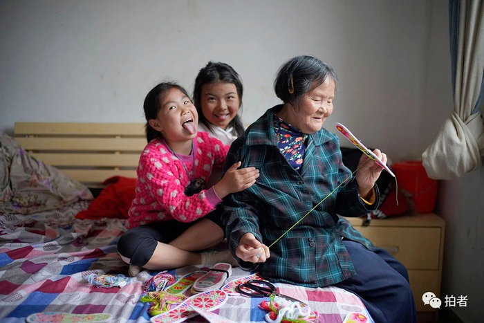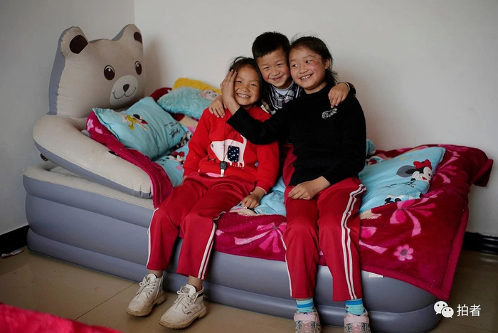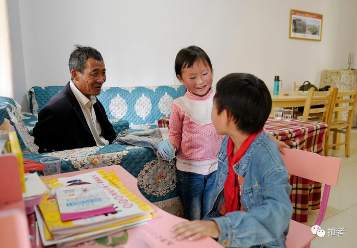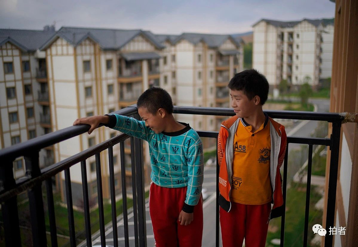 △2020年6月12日,毕节市大方县奢香古镇,李青怡和哥哥、爷爷在新家。一家六口于2019年初搬迁到这里,免费分得了一套居住面积为120平方米的新房,基本生活设施和用具配备齐全,几乎是“拎包入住”。兄妹俩的上学路程缩短到十分钟左右,爷爷奶奶也被纳入城市低保。